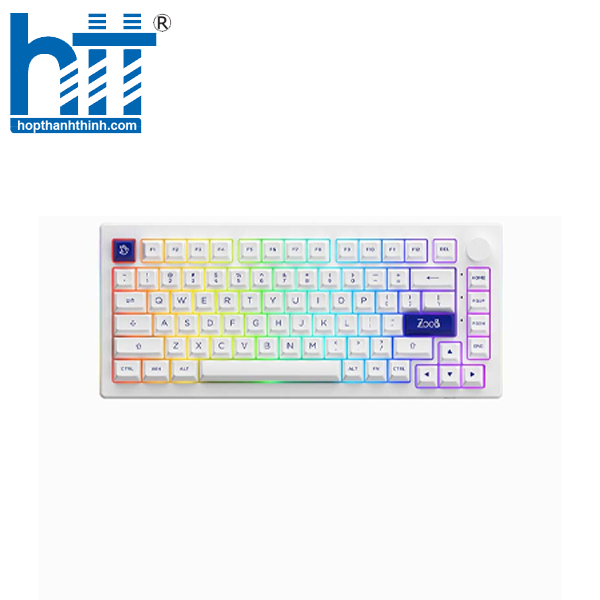 Không dừng lại ở đó, bộ Keycap với chất liệu PBT siêu bền cùng công nghệ in Double-Shot giúp các ký tự đẹp mắt, chống ố màu trên mỗi phím bấm của phối màu Blue on White theo thời gian sử dụng.