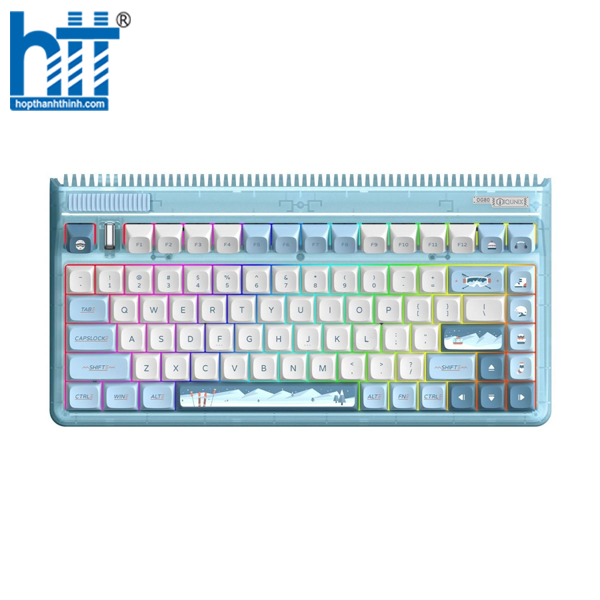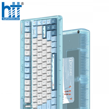 Bàn phím cơ không dây IQUNIX OG80 được thiết kế theo định dạng 80% với 83 phím kết hợp cùng các phím sử dụng switch TTC/ Cherry dạng tactile, keycaps thiết kế theo kiểu dáng Cherry và được in nhiệt Double-shot mang đến cho người dùng những cảm giác thích thú khi gõ phím. Keycap được thiết kế với 2 màu Trắng – Xanh có hoạ tiết theo phong cách rất trẻ trung, hiện đại. Vỏ nhựa xanh trong suốt cho phép người dùng nhìn thấy được các thành phần linh kiện chất lượng bên trong.
