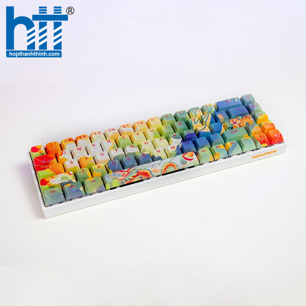 Bàn phím cơ Newmen Dual Mode GM680 Jungle đi cùng với bộ keycap chất liệu PBT chống mài mòn chống dầu cùng với công nghệ in nhiệt 5 mặt, hình ảnh sắc nét, màu sắc bền bỉ khó có thể phai nhạt theo thời gian, thiết kế lớn tăng diện tích tiếp xúc với ngón tay và tinh tế hơn nhiều so với các loại keycap abs thông thường khác.