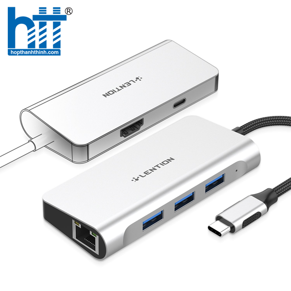 Bộ chuyển đổi USB-C 6 trong 1 Lention C65HE Sliver