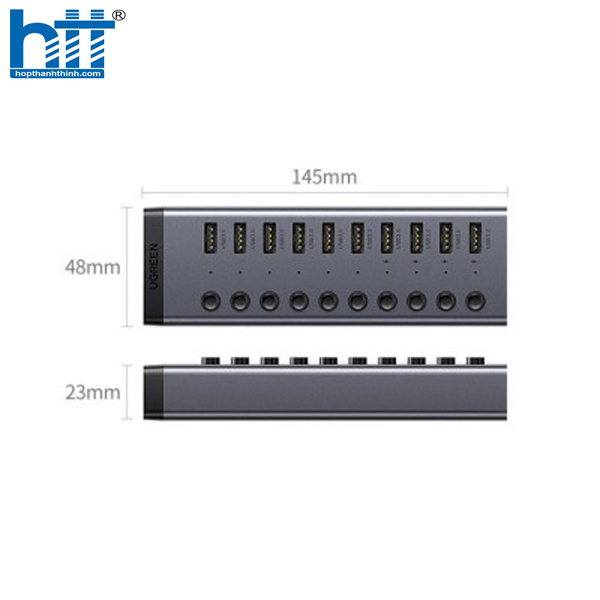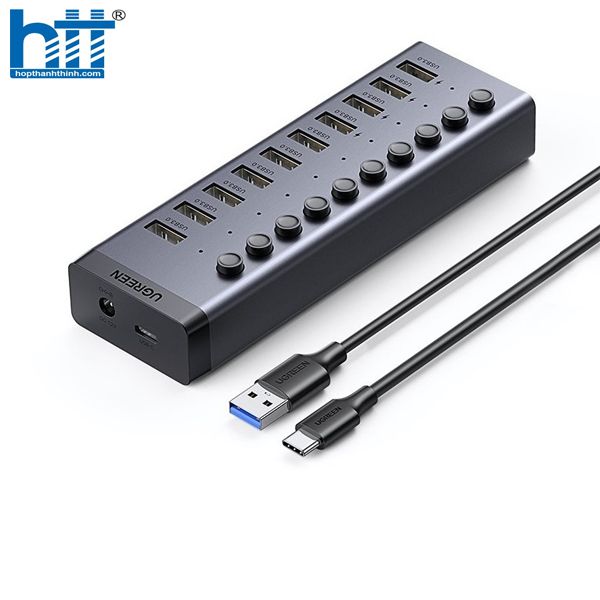 Thông số kỹ thuật: Bộ HUB chia 10 cổng USB 3.0 5Gbps vỏ nhôm, công tắc Ugreen 30779 (kèm nguồn 12V4A) cao cấp