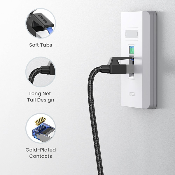 Cáp mạng Cat 8 Ugreen được bảo vệ bằng các cặp xoắn lá nhôm riêng lẻ (S/FTP), giúp giảm nhiễu tối đa làm cho tốc độ mạng nhanh và ổn định hơn so với Cat 6, Cat 7. Với dây 30AWG, cáp Cat 8 Ugreen này được bọc dù chắc chắn và dày, dễ dàng mang theo với độ bền và độ linh hoạt tối đa.