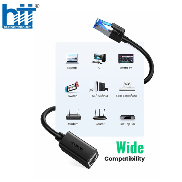 - Cáp nối dài mạng LAN CAT 8 dài 0.5m Ugreen 40497 có thể tương thích hoàn hảo với máy tính, máy tính xách tay, modem, bộ định tuyến, PS5, PS4, PS3, X-Box 360, X-Box One, thiết bị chuyển mạch mạng, ADSL, bộ điều hợp mạng, trung tâm và các mạng khác thiết bị có đầu nối RJ45. Nó cũng có thể hoàn toàn tương thích ngược với Cat7, Cat6e, Cat6, Cat5e, Cat5.