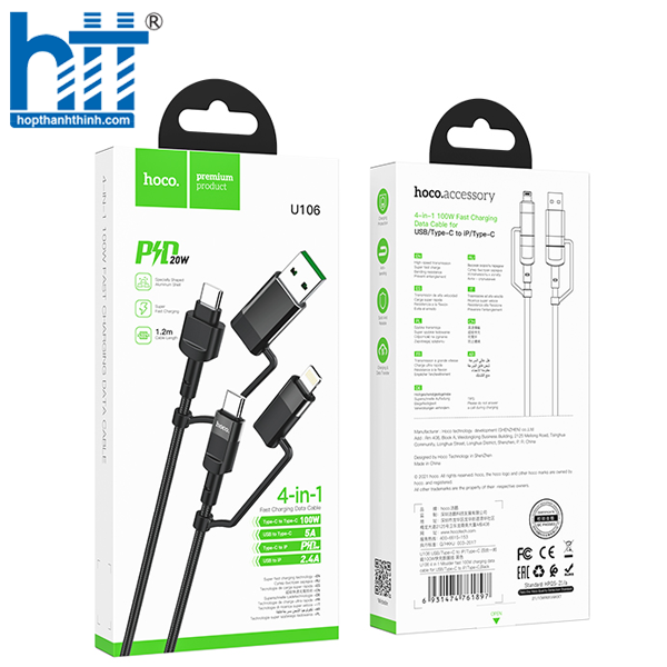 Cáp sạc U106 4 in 1 Moulder là một giải pháp sạc và truyền dữ liệu đa năng, thiết kế để phục vụ nhu cầu của các thiết bị sử dụng cổng USB, Type-C và Lightning. Với khả năng sạc nhanh lên đến 100W và hỗ trợ PD 20W, sản phẩm này là lựa chọn lý tưởng cho người dùng hiện đại.