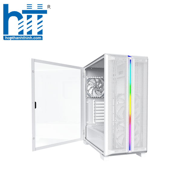 Mặt bên là kính cường lực có khớp xoay chuyên dụng giúp bạn mở và tháo lắp dễ dàng hơn. Đặc biệt, thiết kế không vít cũng cải thiện phần lớn cấu trúc kính của sản phẩm. Với khoảng trống tối đa 350mm cho GPU, chiều cao 170mm cho bộ làm mát không khí, chiều dài 180mm cho PSU, đây là lựa chọn hoàn hảo cho công trình của bạn.