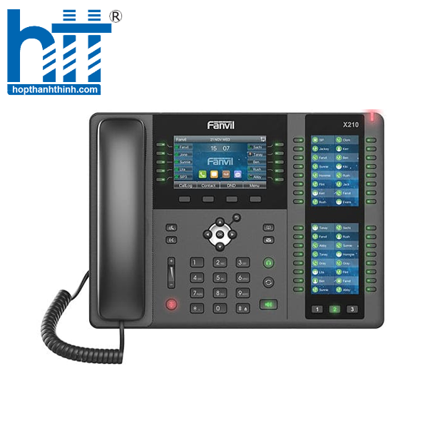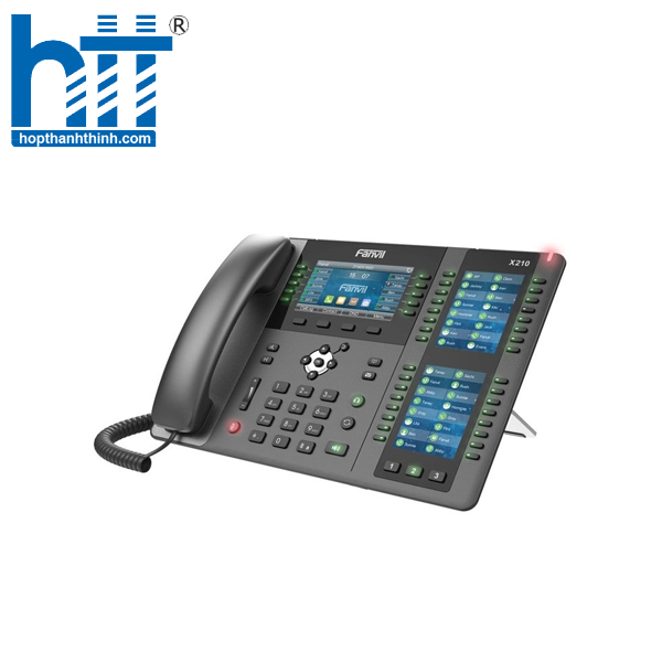 Fanvil X210 là điện thoại IP doanh nghiệp cao cấp. Dành cho người dùng cần truy cập vào các tính năng linh hoạt và nâng cao. Với 10 phím DSS trên màn hình màu chính 4.3 “. Tối đa 96 phím DSS trên màn hình màu 2 × 3.5”. X210 có tổng cộng tới 106 phím DSS để đặt cho BLF, quay số nhanh, chức năng phát sóng nhóm. Có âm thanh HD, tích hợp Bluetooth, kết nối Wi-Fi, hỗ trợ EHS, tích hợp Gigabit kép, PoE, camera IP / SIP.