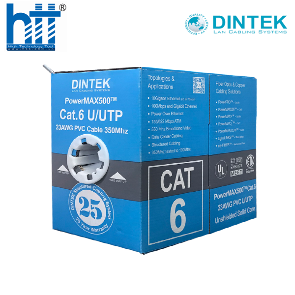 Cáp mạng DINTEK CAT.6 UTP, 4 cặp dây, 23AWG, 305m/thùng, khoảng cách truyền tín hiệu lên đến 150m.