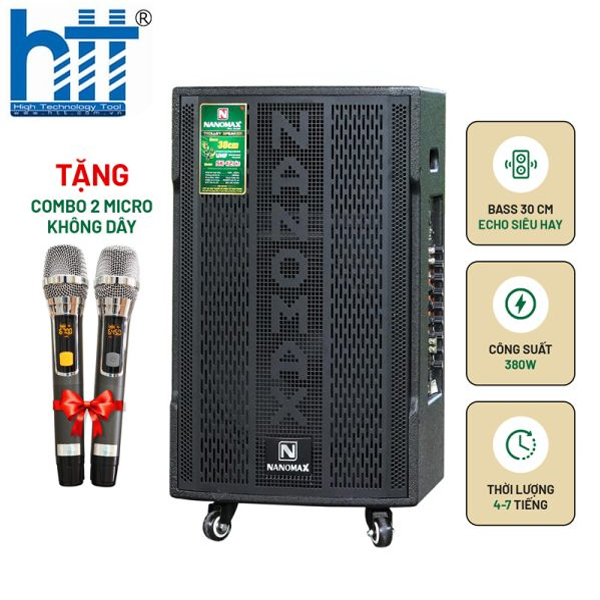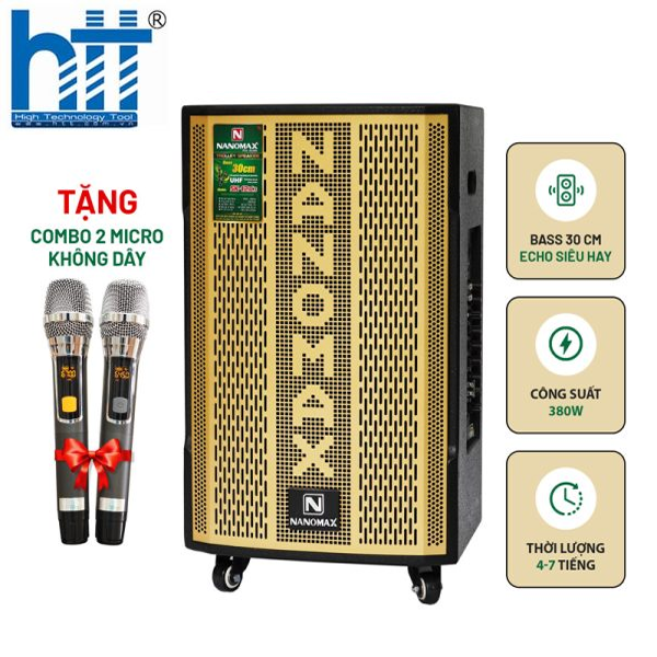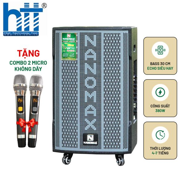 Nanomax SK-12X3 là loa kéo giá rẻ vì riêng 2 mic không dây chiếm tới 1/3 giá bán; đầu kim loại, đuôi nhựa; khả năng chống hú siêu tốt, hát siêu nhẹ do dùng band UHF; có thể chỉnh tần số, khóa tần số chống mất kết nối. Ngoài ra, trong mic có 2 nút tăng giảm độ nhạy 7 mức, người giọng yếu nên để mức 6-7, người giọng khỏe mức 4-5.