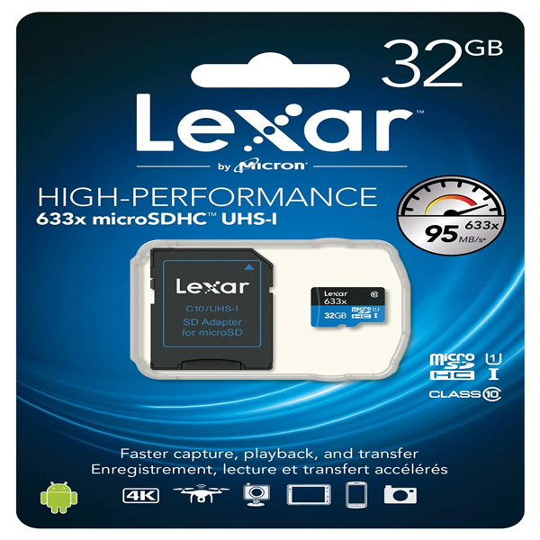 Thẻ nhớ MicroSDHC/microSDXC Lexar High-Performance 633x rất tuyệt vời để sử dụng với máy tính bảng hoặc điện thoại thông minh của bạn, tải về hoặc lưu tất cả các tập tin giải trí yêu thích của bạn một cách nhanh chóng, bao gồm cả những bộ phim chất lượng cao nhất, hình ảnh, và các bài hát.