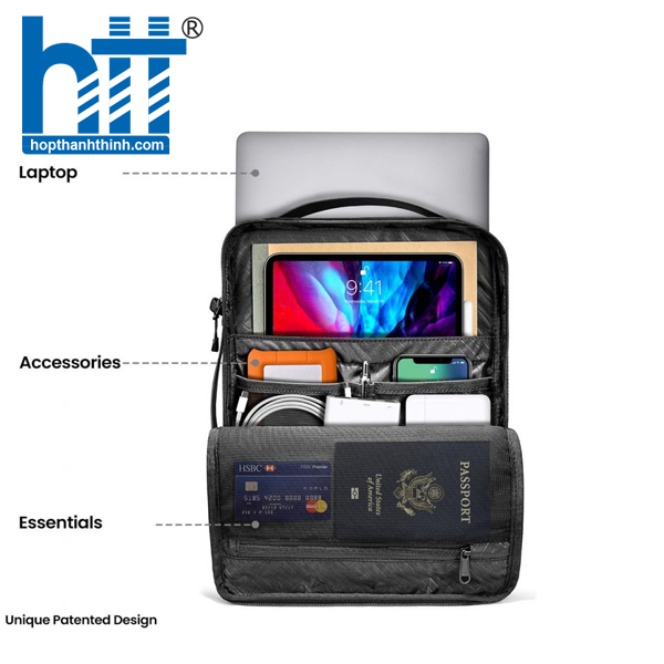 Khoang túi chính có thể truy cập vào máy tính xách tay của bạn một cách nhanh chóng, dễ dàng. Một một ngăn chính ngoài có ngăn để đựng iPad và các túi phụ kiện dễ dàng lưu trữ các phụ kiện như bộ sạc, bộ chuyển đổi, chuột, cáp, điện thoại, ví, v.v. tiện lợi khi đến công sở hay ra ngoài.